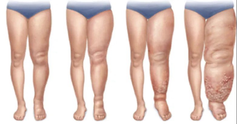 Οι παράγοντες που μπορούν να οδηγήσουν σε λεμφοίδημα κάτω άκρων περιλαμβάνουν: